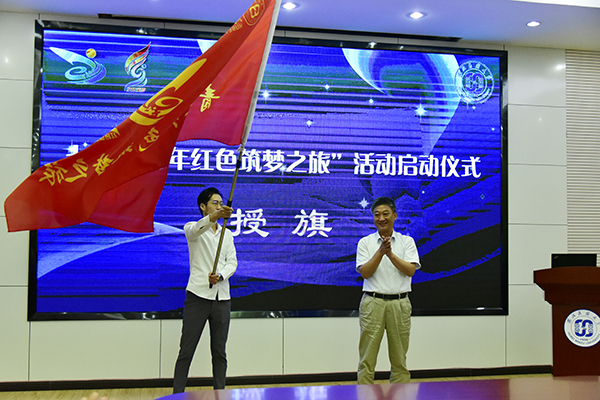 永利官网党委副书记、校长顿祖义宣布:第六届中国国际“互联网+”大学生创新创业大赛3044am永利集团3044noc初赛“青年红色筑梦之旅”活动开幕!随后,亲自为参加“青年红色筑梦之旅”活动的学生代表授旗。
