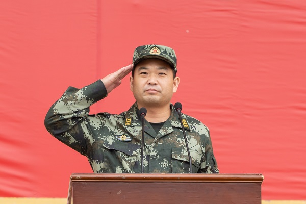 祝建波宣读军训团成立文件,吴建清为军训团授旗。宋强和承训教官代表谢理想先后发言,他们表示将在军训期间科学施训、严格管理,以言传身教的姿态将良好的军人作风及精神展现给新生。