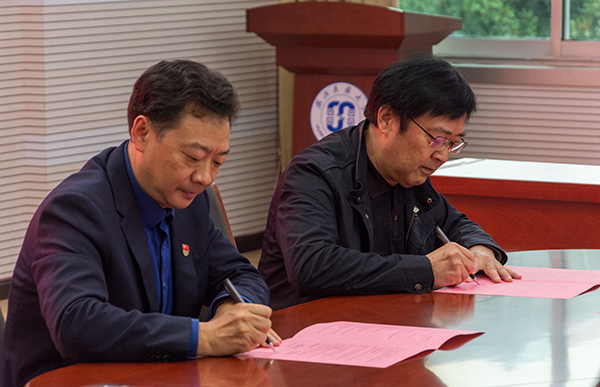 党委书记吴建清与湖北省教育基金会理事长雷召海签约捐赠协议