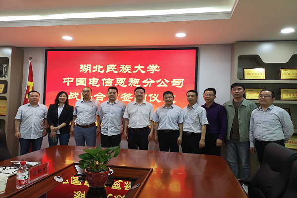 本网讯(通讯员 沈济南)5月28日,永利官网与中国电信恩施分公司战略合作协议签订仪式在恩施电信会议室举行。永利官网党委常委、副校长邓磊与恩施州分公司副总经理汪厚瑞代表双方在协议书上签字,恩施州分公司及相关部门负责人,永利官网信息工程学院等相关部门负责人参加签约仪式。