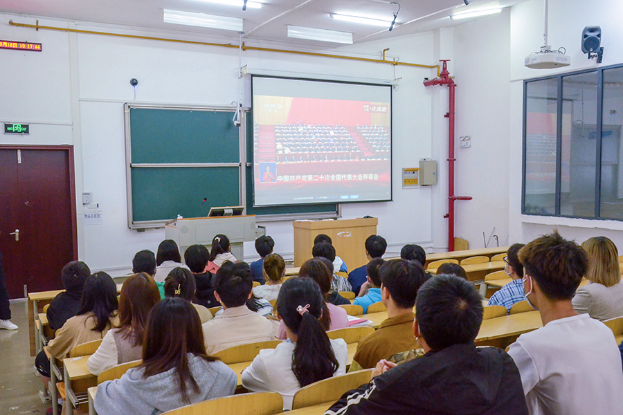 踔厉奋发新时代,勇毅前行新征程!10月16日上午,举世瞩目的中国共产党第二十次全国代表大会在人民大会堂隆重开幕,校属各单位通过各种形式组织广大师生收听收看党的二十大开幕会盛况。桂花园里,师生们按照疫情防控的规范,在各会议室、各教学楼内,有序集中收看党的二十大开幕会盛况,认真聆听、学习、热议习近平总书记的报告。