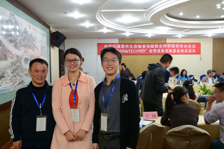 姚兰副院长(中)、吴林博士、朱江博士参加森林生态站多功能联合样带研究学术会
