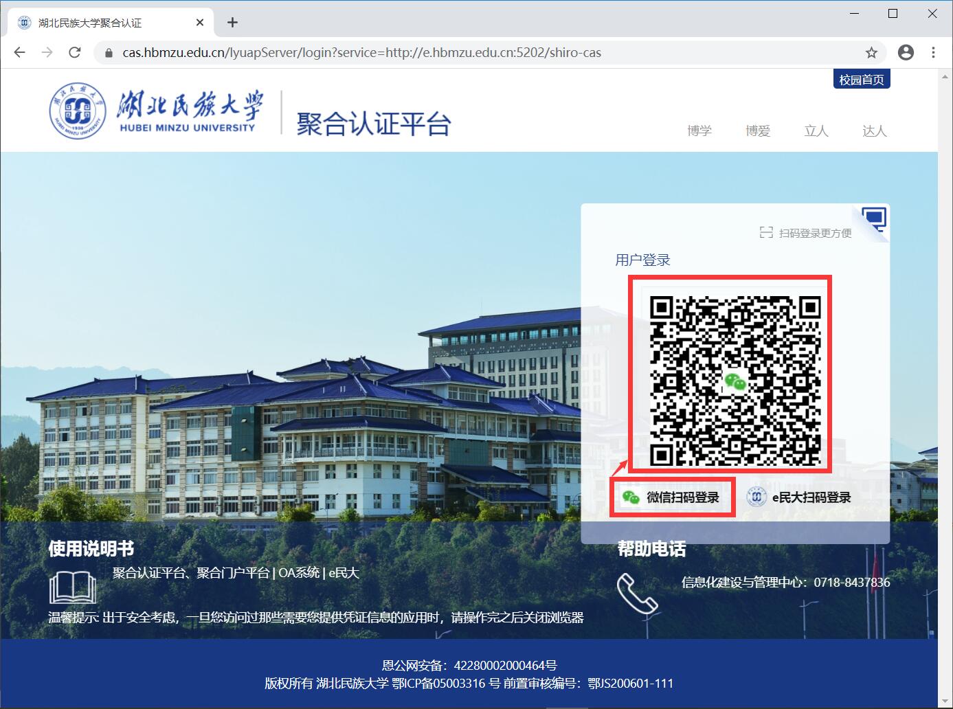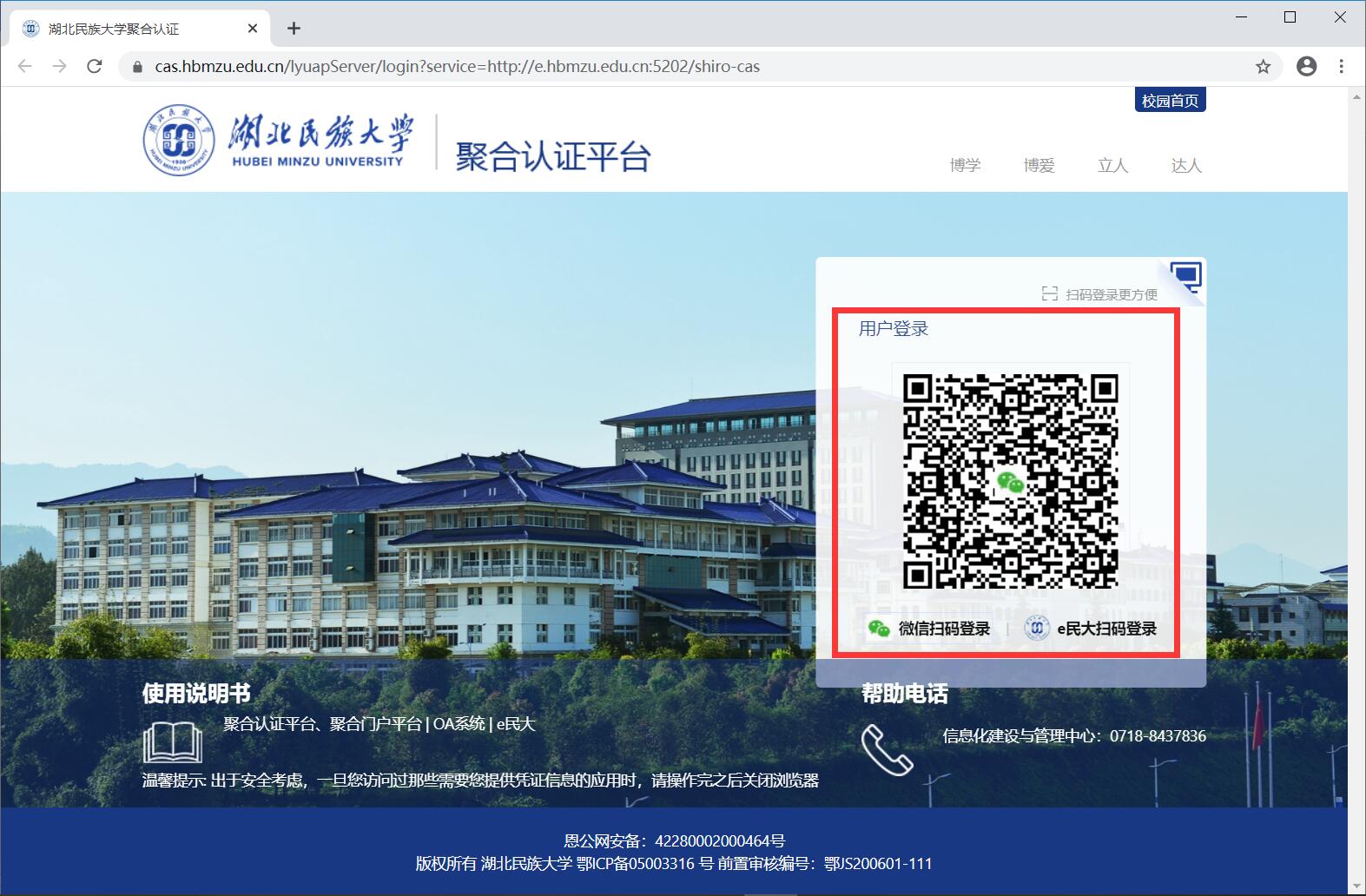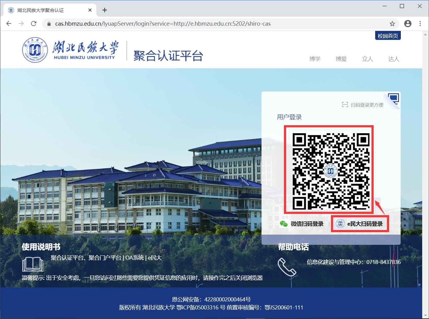 方式二:“e民大”扫码登录