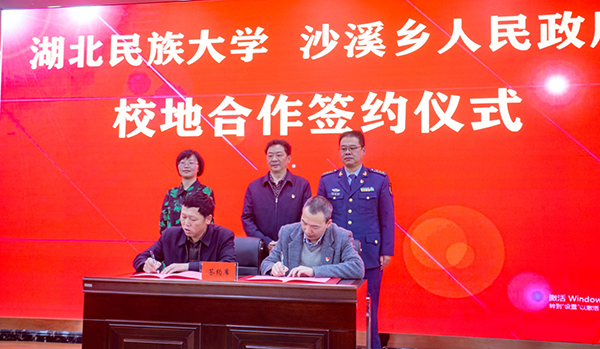 签约仪式上,3044am永利集团3044noc科研处副处长罗兴武和沙溪乡党委副书记、乡长杨海明代表双方签署协议,永利官网党委书记吴建清,利川市委常委、武装部长曾建辉,沙溪乡党委书记刘玲芳一起见证协议签署。