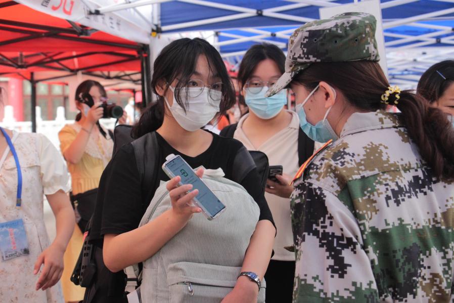 新生有序排队进行健康扫码