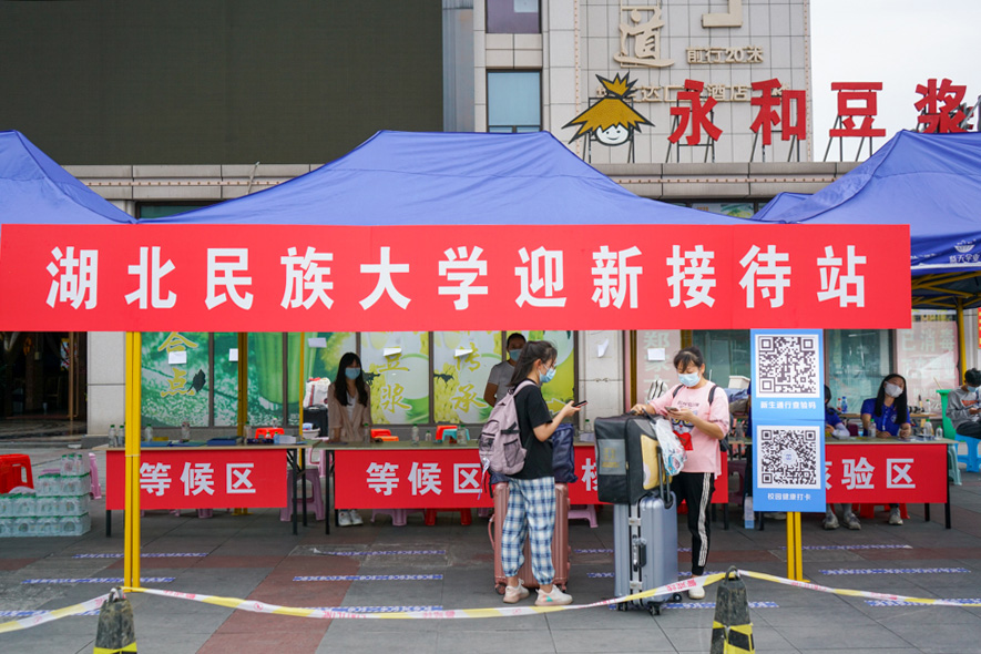 校团委组织学校各学生组织成员前往火车站迎接新生。学校在恩施站设有迎新报到点,工作人员为新生进行体温检测、消毒,核验健康码、行程卡,帮助新生搬运行李,维持现场秩序,协助返校巴士顺利往返。工作人员认真、耐心,迎新现场有条不紊、秩序井然。