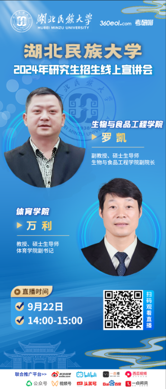 3044am永利集团3044noc生物与食品工程学院罗凯和体育学院万利两位老师莅临直播间,为广大考生解读研招政策、专业详情。欢迎广大考生及家长扫描下方海报二维码观看!