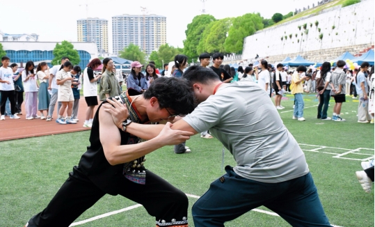59日,永利官网以“中华民族一家亲游园会”活动为契机,围绕“多彩民族,筑梦中华”主题教育扎实开展系列活动民族文化节以游园会的形式举行,研究生部负责侗族展区,开展了斗鸡扳手腕、跳房子等民族特色活动,让参与的师生感受到了独特的侗族魅力