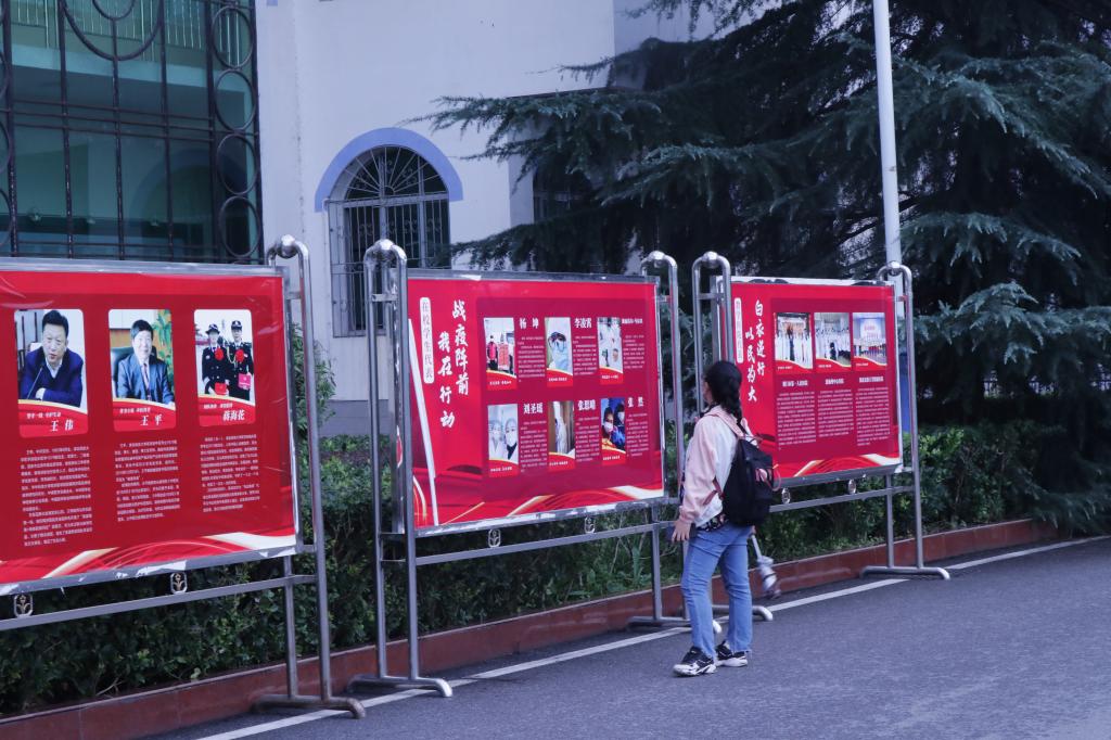 展板分为四个板块:“心中有家国,立马振山河”、“白衣逆行,以民为大”、“身负青囊,剑指远方”和“战役阵前,我在行动”,分别介绍了钟南山等四位国家功臣、三家附属医院、我部优秀校友以及医学生们在抗击疫情中的突出贡献,向师生们展示了逆行者们敢于斗争、敢于胜利的大无畏气概。