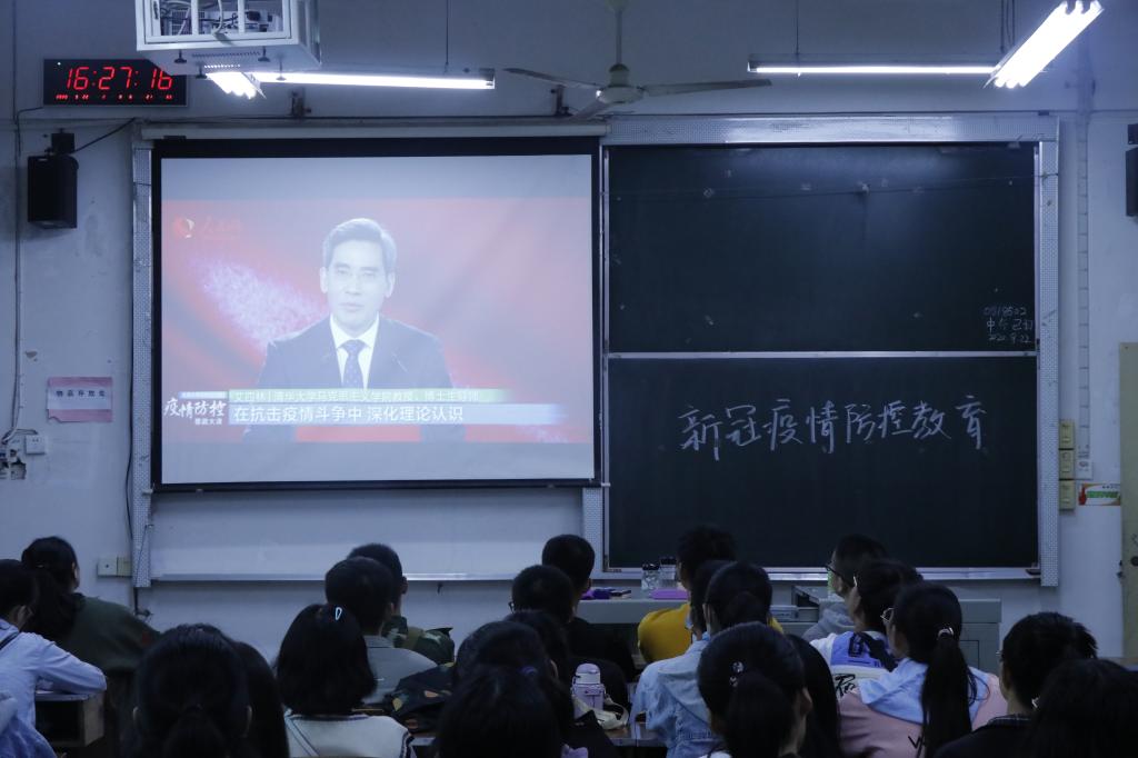 疫情防控教育以视频和写心得模式,加强学生对疫情防控的重视,并以防疫先进典型为榜样,帮助学生坚定学医信念,树立远大志向。