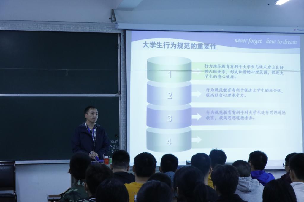 袁琳、向涵、艾尔肯老师向学生们介绍普通高等学校学生管理规定等各项规章制度,着重强调学业、宿舍生活的各种奖惩方案,建立学生的遵纪守法意识。