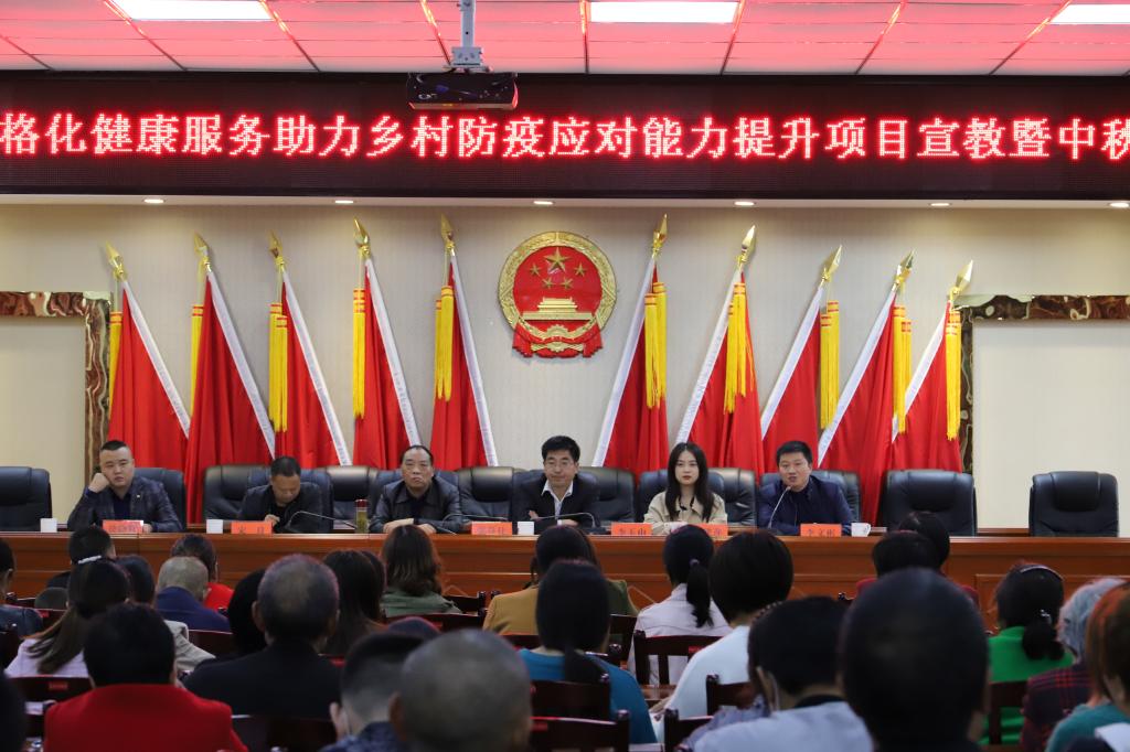 (本网讯)9月30日,为了落实共青团省委“基层网格化健康服务助力乡村防疫应对能力提升”公益项目的实施,在恩施州助学扶贫促进会和共青团3044am永利集团3044noc医学部团总支的共同组织下,一行人驱车到达巴东茶店子镇,在镇政府七楼会议室开展了对茶庵寺村、风吹垭村、茶店子村的卫生室医护人员及村民的健康防疫宣教活动。