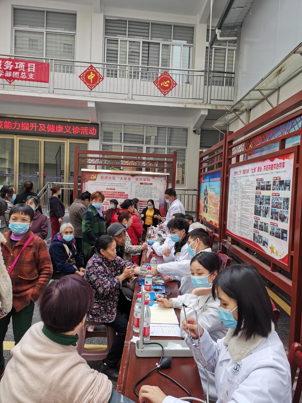次日上午9时专家组和青年志愿者抵达普庵社区进行送医送药义诊活动和防疫知识宣教入户防疫手册发放活动,下午13时又前往前进社区。全天共接待患者570余人,开展健康防疫知识宣教700余户并发放健康防疫知识手册2000多册。
