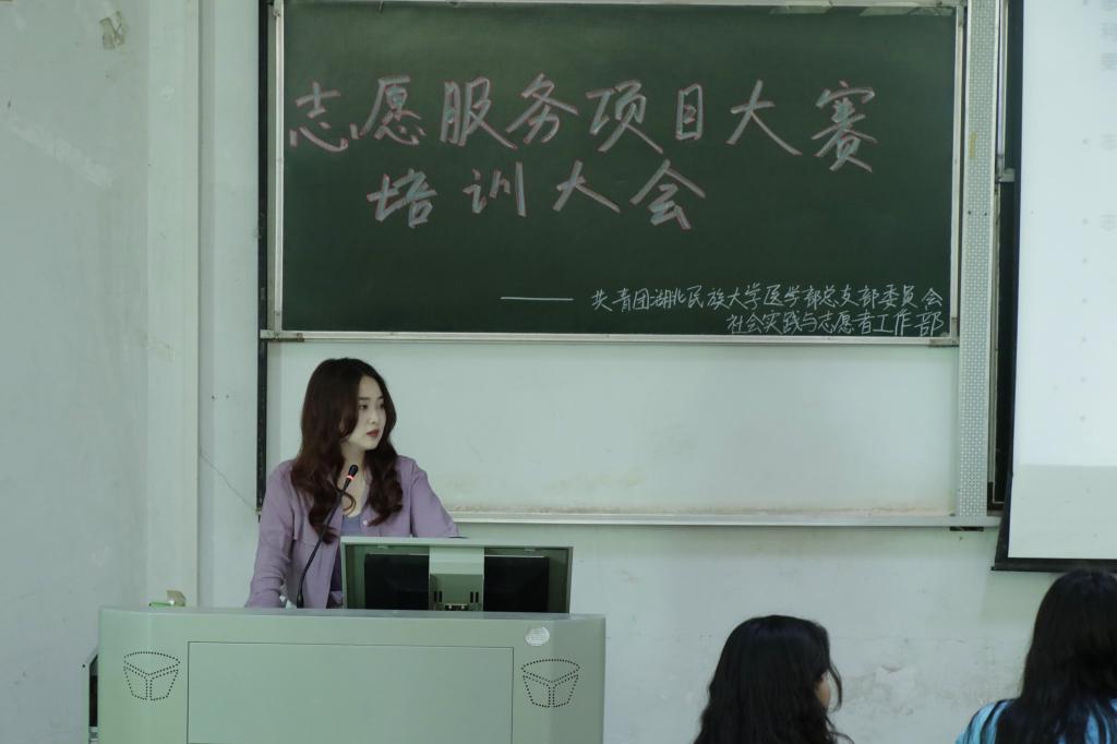在培训中,陈建萍对“志愿者”一词做深度解读,她着重强调志愿者的三个关键词——“自愿”、“不求利益回报”以及“专业性”,并列举“蓝天医疗队”、“恩施义工协会”等志愿服务队、志愿服务项目供大家学习参考。陈建萍向大家讲述志愿者精神及志愿服务项目对自身的有益之处,她表示这不仅可以让志愿者更好的接触社会,了解社会,而且可以让大家通过理论联系实际,增长专业知识,锻炼能力,增长才干,并邀请志愿者发表自己的看法和在志愿服务中的收获。紧接着,陈建萍向大家讲解何为志愿服务项目,并指导志愿者们修改志愿服务项目大赛的申报书。她鼓励大家向规范化,常规化,专业化,品牌化四个方面完善志愿服务项目。最后,她指出志愿服务中经常存在的问题,希望各位志愿者可以结合时事热点,结合自己的专业知识,在志愿服务项目上充分发挥自己的能力,积极创新,并进行实地调研,从而更好的了解志愿服务的真谛。