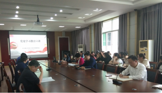 5月13日下午,医学部召开党史学习教育宣讲大会,学校党史教育宣讲团成员蔡诗敏同志受邀参加党史宣讲,医学部常务副书记刘红主持会议,全体教师参加会议。
