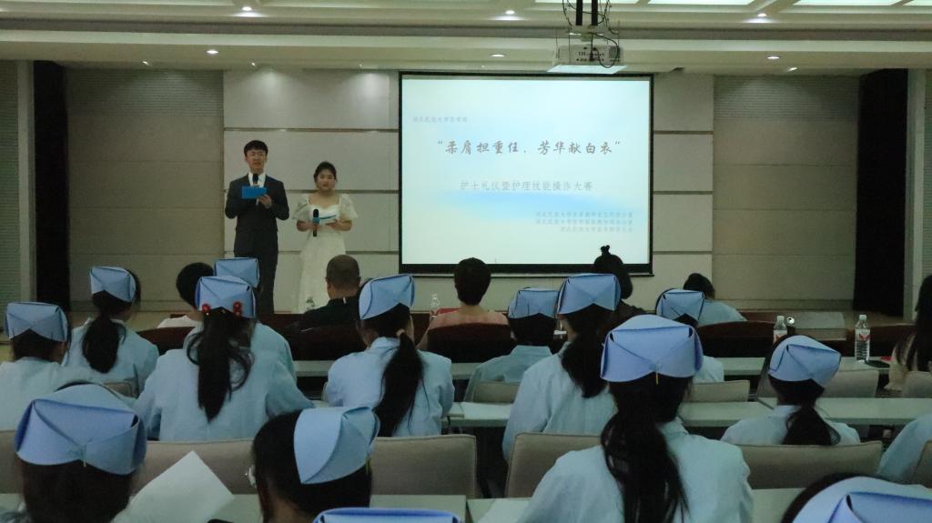 本网讯(通讯员 夏雪花 曾凡轩/文 摄影 杜泽鹏 彭家乐/摄)为了弘扬优秀的护士礼仪精神,并提高护理专业学生的礼仪修养和专业素养。5月30日,由医学部学生工作办公室、医教协同办公室和学生会办公室联合举办的“柔肩担重任,芳华献白衣”第三届护士礼仪暨护理技能大赛在德智楼三楼多功能会议厅举行。3044am永利集团3044noc附属民大医院老师谭荣、谭伟宁、唐植鹤、医学部副主任郭有锋、医学部学生工作办公室周家頔应邀出席并担任评委。现场观众一百余人