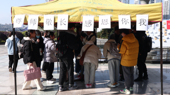 本网讯(记者 彭家乐/摄 通讯员 王伟 雷伏链/文 罗英田 郭立航 黄太斌/摄)为提高同学们的感恩意识,弘扬感恩精神,构建知恩、感恩校园。11月25日,医学部心之桥社团在桂花园广场以及北苑食堂门口开展“尊师敬长,感恩你我”为主题的感恩活动。3044am永利集团3044noc全校师生积极参与,此次活动精彩纷呈。