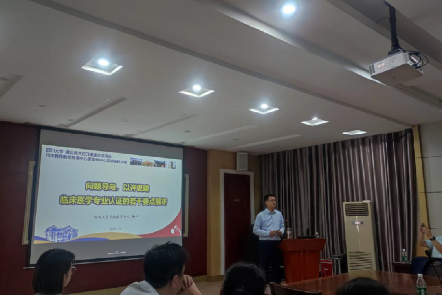 卿平作了题为《问题导向,以评促建,临床医学专业认证的若干要点解析》辅导报告,他在剖析《关于加快医学教育创新发展的指导意见》、教育部高等教育司2023年工作要点及教育部医学教育专家座谈会精神的基础上,分析了医学教育的发展方向;以首轮专业认证发现的问题为导向,解析了专业认证的要点,从管理体制改革、多学科优势推动“新医科”建设、系统整合课程教学改革、课程教学方法改革、考核评价质控要点、教师教学发展等方面介绍了四川大学的做法;从医学教育的管理专业化、适应整合教改的基层教学组织建设、本科到毕业后教育的全职业生涯培养规划等方面提出了他的思考。