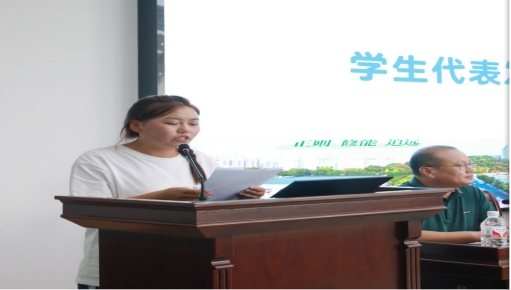 2024级护理9班学生刘演佼代表学生发言,她指出她和同学们都非常自豪能成为本次护理专本联合班的首届学生,她们怀揣着对护理事业的美好憧憬与热爱,选择了这条充满挑战与奉献的道路,护理专本联合培养班是她们梦想起航的加速器,她们对两所学校心存感激也满怀信心,将以两所学校的优良传统为基石,在未来的学习和生活中珍惜这段宝贵的时光,全力以赴的投入到学习中去,不断提升自己的专业素质和能力。