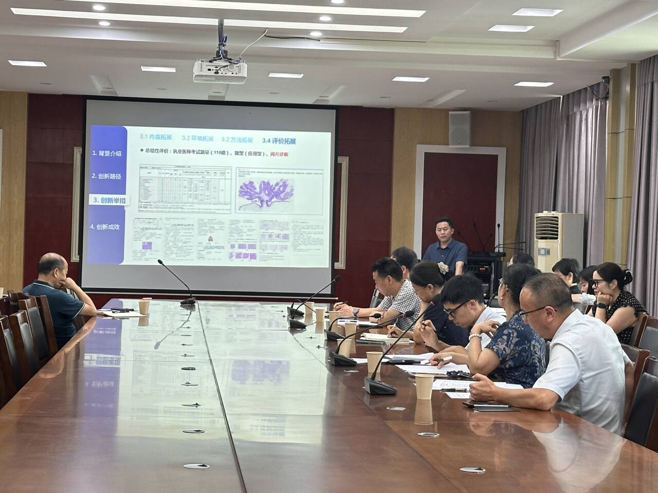 按照学校比赛要求,本次大赛共分为网络评审和现场评审环节,其中教师教学创新大赛两项成绩得分各占50%,青年教师教学竞赛两项成绩分别占30%70%。现场汇报环节,参赛教师(团队)围绕所主讲课程的教学大纲和教学实践,展示了课程的设计思路与创新、教学过程与方法、课程思政与专业教育融合案例以及课程教学成果等,充分展现了医学部教师的教学风采与教学改革成果,专家评委现场评分。