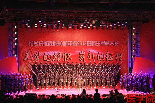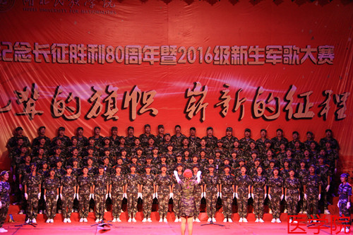 本网讯(记者 徐祎 陈灵佼/文 黎锐/图)为纪念长征胜利80周年暨“九一八事变”95周年,9月18日,永利官网2016级军歌大赛在大学生广场隆重举行。音乐舞蹈学院兰宏建老师、黄玉林老师、谷秋阳老师、谷穗老师、陈超老师应邀担任评委,各二级学院党委书记、学生科老师莅临现场。大赛由文学与传媒学院的董圣洁同学和民族学与社会学学院的王伟文同学主持。