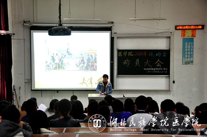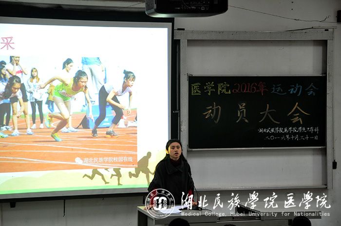 本网讯(记者 庄严洁 汪枫丽/文 通讯员 刘彤/摄)为动员全院力量,保障运动会期间工作的顺利开展,10月31日,我院在8406教室召开2016年秋季运动会动员大会。我院党委副书记张蕊、学生科全体老师及五大组织负责人出席此次大会,全体运动员以饱满的热情积极投身于大会中。大会由学生科老师向涵担任主持。