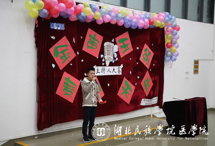 本网讯(通讯员 吴梦琪 向琴 严敏萍/文 周蕾/摄)为丰富大学生活,提高大学生的综合素质能力,11月17日,我院在修远楼5B509教室成功举办以“金声玉籁·麦动天外”为主题的主持人大赛决赛。我院黄鸿、詹康、宁檬、向涵老师及学生会主席项任阳应邀担任评委,共两百余人参与观看。大赛由向上和贺丹主持。