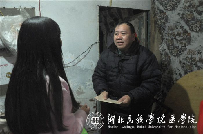 本网讯(通讯员 李晓芳/文 刘彤 肖智仁/摄)11月24日,在我院团委书记彭弥老师的带领下,团委社工部的学生干部和青年志愿者们带着筹集到的善资与购买的营养品去恩施二街看望涂超益老人。此次探望是“构建绿色民院风”废品回收募捐活动的后期善款捐赠工作。