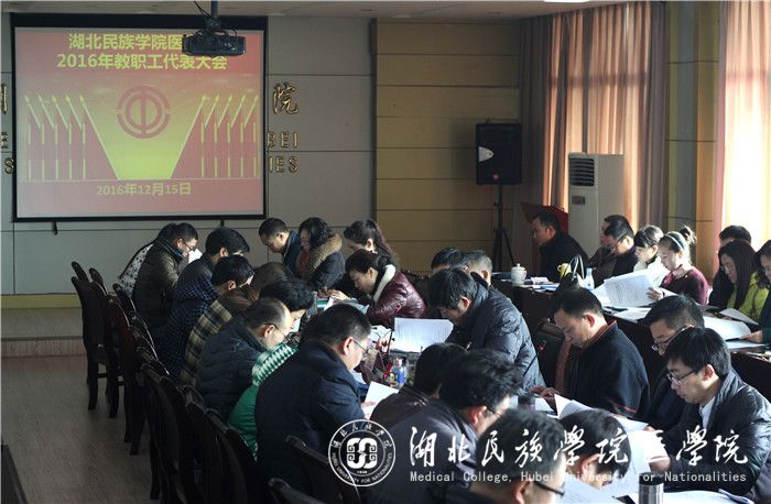 大会听取了刘红书记所作的《湖北民族学院医学院2016年年终分配方案草案》的报告,经分组讨论,各组汇报讨论情况,主席团听取意见,主席团代表作说明后,大会通过了《医学院2016年工作报告》、《医学院2016年年终分配方案》以及《医学院分工会常设机构名单》。最后,全体起立,奏《湖北民族学院院歌》,大会圆满落幕。