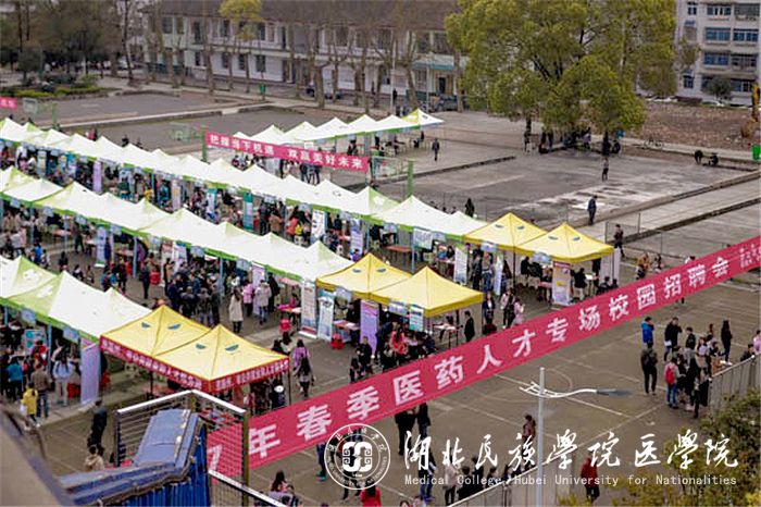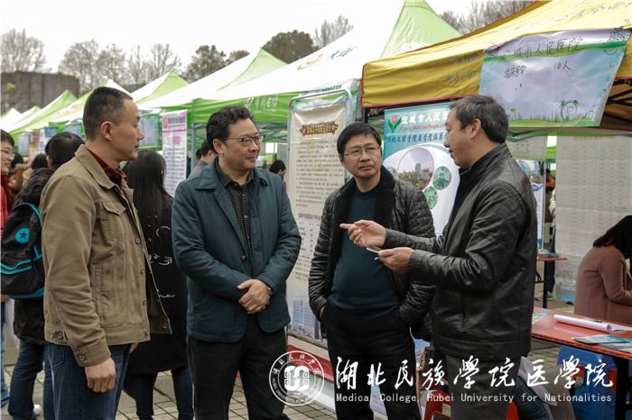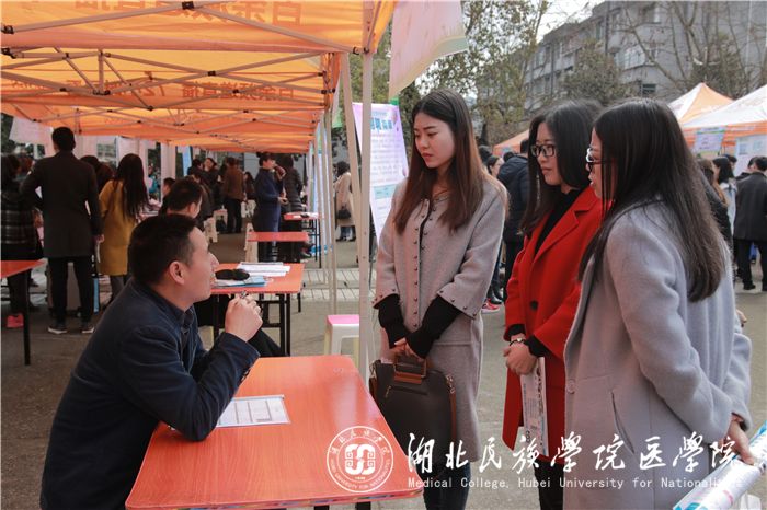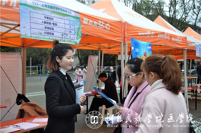 本网讯(通讯员 李晓芳 郭曼/文 周蕾 肖智仁/摄)3月25日,由湖北民族学院、湖北民族学院科技学院、恩施州公共就业与人才服务局主办,湖北民族学院医学院承办的“2017年春季医药人才专场校园招聘会”在湖北民族学院团结广场举行,永利官网党委书记吴建清,招生就业处处长周腾蛟、副处长石华富,我院党委书记刘红等领导亲临现场指导工作,并与招聘单位负责人和求职学生进行现场交流。