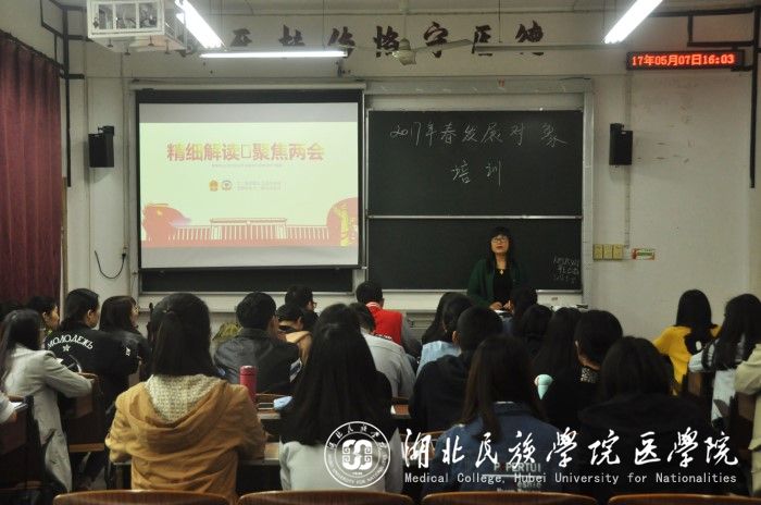 本网讯(通讯员 毛婷 杨珂/文 周蕾/摄)5月7日,我院党建工作委员会承办的2017年春党员发展对象第八次授课于8401教室开展,此次授课以“精细解读,聚焦两会”为主题。我院党建工作委员会指导老师郑娅进行授课,共51名党员发展对象参加了此次培训。