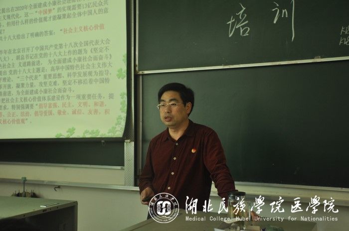 本网讯(通讯员 余秀/文 周蕾/摄 )为增强党员发展对象对党组织的了解,5月8日,我院学生党建工作委员会于8401教室对党员发展对象开展第九次培训,熊茂来主任以“践行社会主义核心价值观,努力实现‘中国梦’”为主题进行授课,我院51名发展对象参加此次授课。