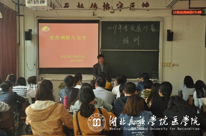 本网讯(通讯员 李晓芳/文 肖智仁/摄)为使党员发展对象进一步了解党的纲领和宗旨,5月8日,我院在8401教室举办了2017年春第十次党课培训。本次培训由我院院长向阳教授担任主讲,共51名发展对象参加培训。