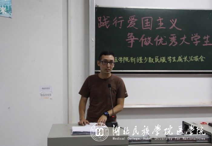 活动开始,全体起立奏唱国歌。接着,五位新疆毕业优秀生一 一上台向大家讲诉自己的大学经历。来自临床医学的伊尔夏提·吐逊江成功考入新疆当地医科大学的研究生。他在自己的成长汇报中讲到,在这几年的大学生活中,他积极参加学校的活动,充实自己的大学生活。他是永利官网M·E·C协会的最初创始人之一,也是协会的副会长,同时他也积极参考英语四、六级等考试,荣获"优秀三好学生"、"优秀学生干部"等称号。他从准确定位目标、清晰思想方向、自身考研经历三个方面向学弟学妹们讲解如何规划自己的大学生活,让同学们对自己以后得大学生活有了基本的定位。而其他四位优秀毕业生也分别从自身的经历讲诉了自己的大学生活,同时他们都在自己的汇报中讲到,一定要加强自身的思想意识,要热爱祖国,维护民族团结,也告诫自己的学弟学妹们一定要相信自己的能力,只要努力一定能成功。