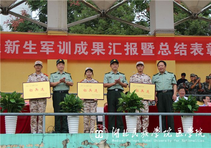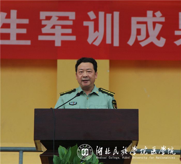 总结大会上,副校长汪兴平首先宣读了军训团表彰文件。授予2017级61名在军训中表现突出的学生以“优秀学员”称号,授予20名教官“优秀教官”称号。医学院、音乐舞蹈学院以及马克思主义学院获得“标兵连”。接着,学校党委书记吴建清代表学校党委向全体教官表示衷心的感谢,并向取得优异成绩的个人和集体表示祝贺。吴书记在讲话中充分肯定了此次军训的成果。他指出,在短短的12天里,永利官网先后进行了多项军事技能训练,开展了野外拉练、国防知识讲座、入学教育以及军歌大赛等活动,激发了同学们的斗志,磨练了意志,增强了合作意识和班级凝聚力,这为他们进入精彩而忙碌的大学生活奠定了坚实的基础。同时,吴书记也从“心怀爱国之情,践行报国之志”、“培养优良作风,做到知行合一”、“宏扬阶级精神,实现青春梦想”三个方面表明了自己对新生的期望,他希望同学们进一步巩固军训成果,将在军训中练就的优良作风和铁的纪律永远保持下去,把军人顽强的品格与求学严谨、认真的态度结合起来,做永伴时代发展的领头军。