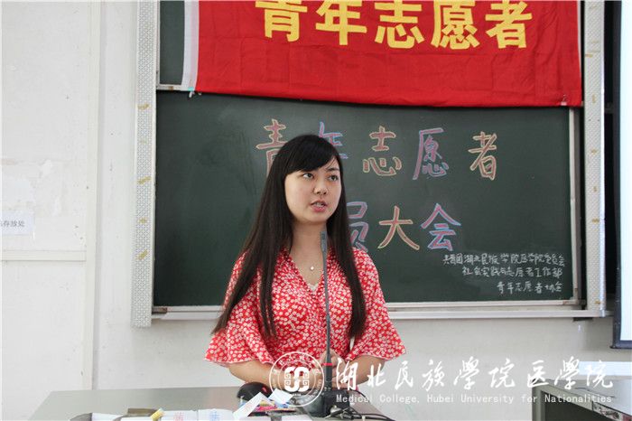 大会伊始,张雯雯同学对新同学表示欢迎,她就“志愿者”形象向同学们讲述自己参加青协前后对“志愿者”的不同理解,鼓励大家积极参与到志愿服务活动中来,并对我院青年志愿者协会的发展和青年志愿者“奉献、友爱、互助、进步”的服务宗旨做了简单介绍。