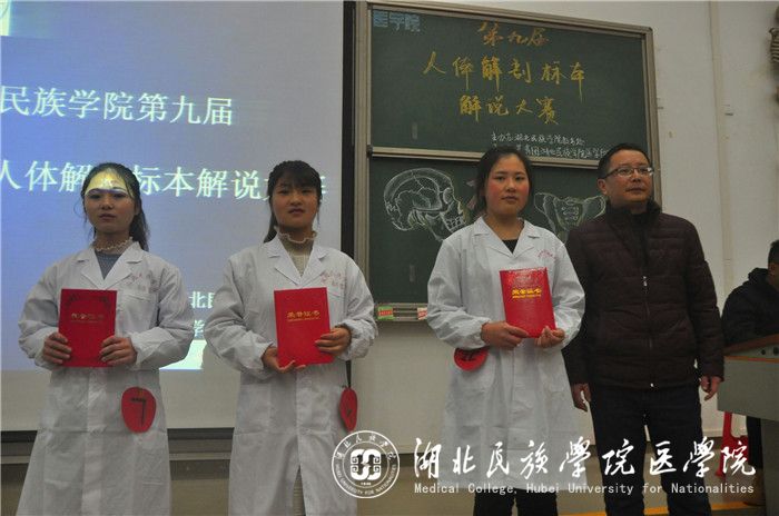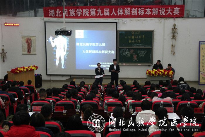 本网讯(通讯员 李明辉 苗佩佩 卢天琳/文 杨漫丽/摄)为弘扬医学风采,进一步展现我院特色,12月11日,由永利官网教务处主办、我院团委承办的第九届人体解剖标本解说大赛决赛于修远楼5B509教室举行。我院解剖教研室老师李国贵、陈龙菊、谭文波、吴刚、谭刚担任评委,我院党委副书记张蕊、学生科科长向驰及团委书记张鼎应邀出席。