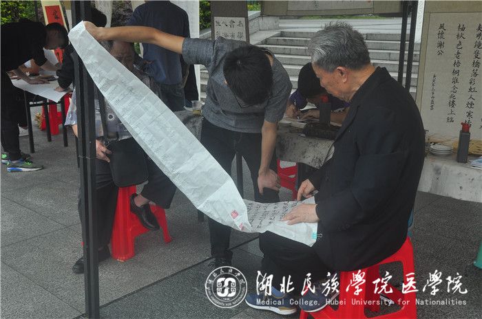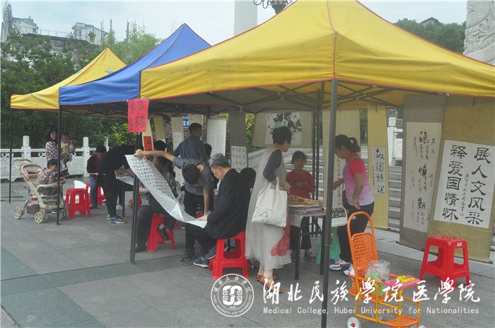 本网讯(通讯员 田炎红/文 吕丰旭/摄)为认真贯彻习近平总书记系列讲话精神,进一步推进廉政文化进校园活动,丰富廉政文化内涵,6月2日,我院书画社承办的主题为“廉洁从政从教、爱岗敬业、敬廉崇洁、知荣明耻”的廉政书画展于大学生广场成功举办。恩施市书法家协会金万毕、譚杰平、周恩平老师亲临现场指导,并对现场书画爱好者们提出专业建议。