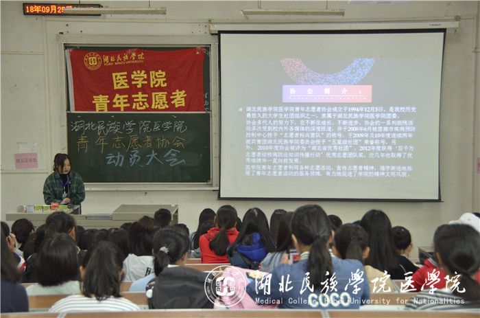 本网讯(记者 欧金兵/文 吕丰旭/摄)为加深新生对青年志愿者协会的了解,弘扬志愿者精神,9月25日,我院青年志愿者协会于医学院8205教室举办以“将爱传递下去”为主题的动员大会。