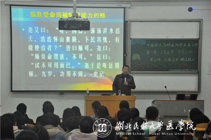 本网讯(通讯员 周玉珠 郭恩惠/文 吴亚辉/摄)为了丰富永利官网学生的课余文化生活,3月21日,医学部团总支社团发展中心中心处举办的中国通史简纲系列讲座之“众说五帝,禅让疑云”于修远楼5B206教室顺利开展。医学部教授王嘉军应邀担任主讲人,140余名学生到场聆听。