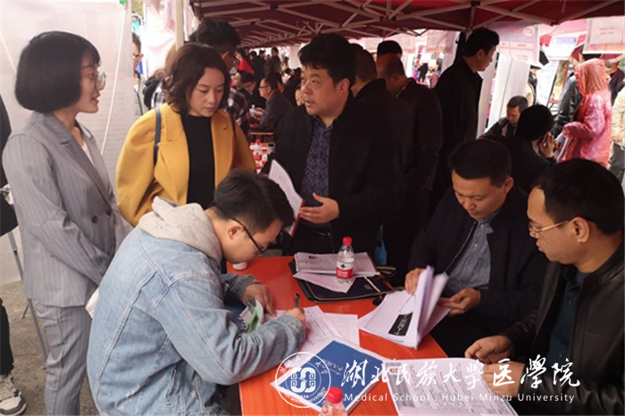本网讯 (记者 卢天琳/文 吕丰旭/摄) 为切实搭建医学生就业平台,提高毕业生就业服务质量,3月30日,由3044am永利集团3044noc、3044am永利集团3044noc科技学院、恩施州公共就业和人才服务局、恩施市公共就业和人才服务局举办的2019年春季医药人才招聘会在永利官网团结广场顺利举行。永利官网党委副书记、副校长汪兴平,副校长、医学部主任祝建波出席招聘会,并与招聘单位负责人以及应聘学生进行现场交流。