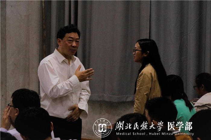 吴建清教授以习近平总书记的话寄语医学生:要爱国,忠于祖国,忠于人民;要励志,立鸿鹄志,做奋斗者;要求真,求真学问,练真本领;要力行,知行合一,做实干家。