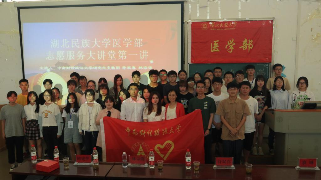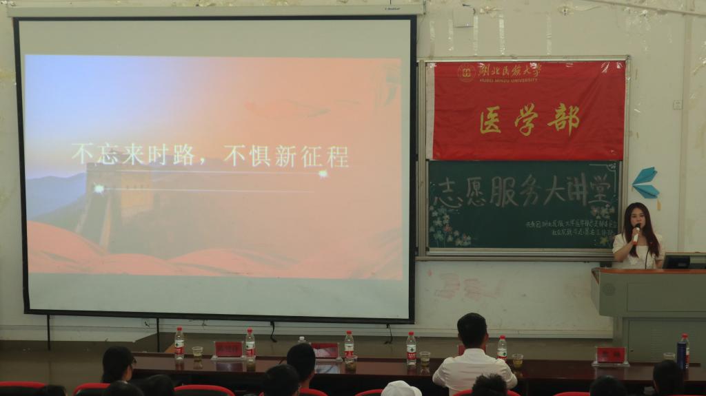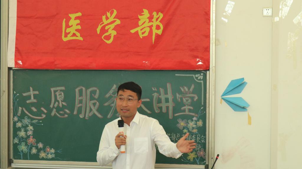 本网讯(通讯员 李湘 袁子涵/文 许旖蕾 曾凡轩/摄)为大力弘扬"奉献、友爱、互助、进步"的志愿精神,不断加强和完善医学部志愿服务体系建设,切实发挥志愿服务在学校发展和构建美好社区中的积极作用,6月5日,由医学部社会实践与志愿者工作部和青年志愿者协会联合开展的志愿服务大讲堂第一讲在修远楼5B404开讲。中南财经政法大学研究生支教团恩施分队队长符双喜、队员林宗海为主讲人。医学部学生办公室袁琳老师、陈建萍老师出席本次活动。现场同学100余人。