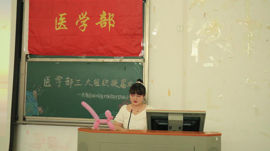 本网讯(记者 曾凡轩 杜泽鹏/文 李湘/摄)6月15日,医学部2020-2021学年度学生干部换届大会在修院楼5B404举行。医学部党委副书记黄晓波,医学部学生工作办公室主任周家頔,医学部团总支指导老师陈建萍,杏林青年发展中心指导老师郑娅应邀出席本次会议。新老学生干部两百余人参会。