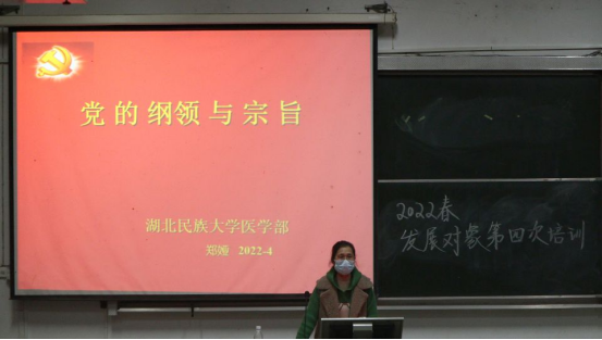 本网讯(通讯员 王伟 扶万里/文 黄太斌 罗英田/摄)为进一步加强对党员发展对象的理论武装和党性教育,4月17日晚上20:00,中共3044am永利集团3044noc医学部委员会2022年春季学期发展对象第四次培训课程于医学部8306教室召开,本次课程由我部郑娅教授担任主讲人,医学部全体发展对象参与本次培训课程。