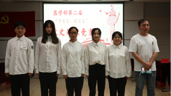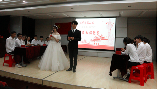 本网讯(通讯员 陈秋妙/文 黄太斌 罗英田/摄)为加强医学部学生对中国共产党百年历史的学习,5月29日,由医学部学生工作办公室主办的第二届“学党史,跟党走”党史知识竞赛于德智楼三楼多功能会议厅举行。医学部学生第一党支部书记郑娅,学生第二党支部书记周家頔,学生第三党支部组织委员高梦琪以及学生第四党支部组织委员兼宣传委员艾尔肯·吾斯曼应邀参加活动,胡子超、周靖雅担任本次活动的主持人,现场座无虚席。