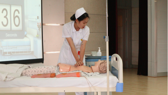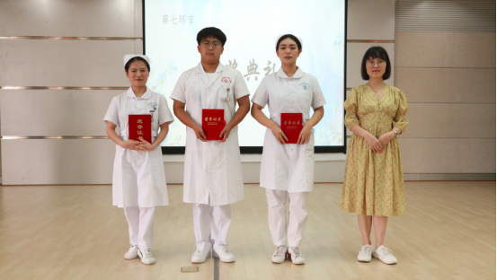 活动在特邀嘉宾周天宇和邬鸣潇同学的《夜空中最亮的星》中拉开序幕。经过前期评选,共有18人入围决赛,本次决赛共有三个赛道,分别为护士礼仪展示、护理操作展示、护理情景模拟,每个赛道均有六名选手参赛。第一赛道护士礼仪展示分为基本礼仪展示和情景模拟。在情景模拟环节,六名参赛选手对以下情景进行了精彩的演绎:当与病人或病人家属发生激烈矛盾时应如何解决、如何处理不愿配合的病人以及如何处理与医院领导的关系,向我们展示了护理工作人员的随机应变能力以及对病人的人文关怀。第二赛道护理操作展示中,六名选手对无菌操作、单人徒手心肺复苏和静脉输液操作技术进行了展示。其中七号、八号选手的规范操作,让大家感受到了护理工作的严谨性及其辛劳程度。第三赛道护理情景模拟共分为两组,六名选手向观众展示了在病房里对病人进行心肺复苏的抢救以及插管等基本操作,让观众看到了护理工作人员面对紧急情况时井然有序的团队协作能力。经过激烈的角逐,最终三号选手刘盈盈、十二号选手陈施羽和十六号选手税丰以良好的精神面貌和规范的技能操作分别荣获三个赛道的一等奖。
