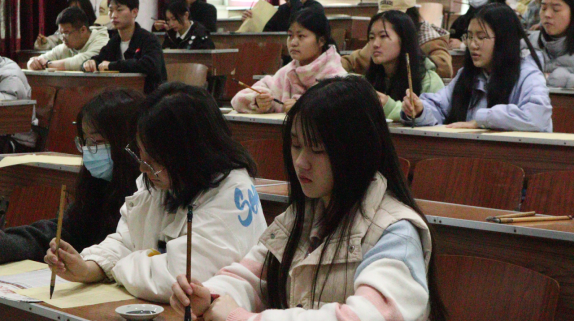 活动现场同学们在余中权老师的带领下尝试规范书写