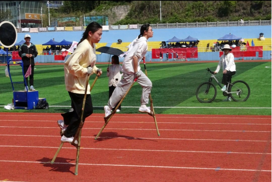 李可,医学部2021级临床医学专业学生,在本次运动会女子竹马项目中荣获冠军。在接受采访时她告诉我们,她此前从未接触过竹马项目,训练的过程中也多次摔倒,在比赛的前一天还磕到了下巴,但她说:“从哪里摔倒就从哪里站起来,运动受伤是常有的事情”。当谈及她平常的训练时,她说道:“周末我通常会训练3个小时左右,其他的时间一般训练1个小时”。正是因为她不轻言放弃的性格,才让她赢得了这份荣誉和大家的赞赏。