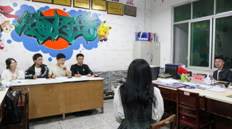 为保证面试“公平、公正、公开、竞争、择优”的原则,一轮面试采取结构化面试的形式,面试前新生先进行登记并随机抽取面试顺序,面试过程中,新生不得透露自己的学号和姓名。二轮面试由学生工作办公室老师、学生组织主要负责人担任评委,面试答辩分为竞聘者演讲、评委提问两个部分。负责纳新的各位评委均十分认真的对待此次纳新活动,在面试过程中认真倾听了每位同学的演讲,并针对每个面试同学相应的提出了与面试部门相关的问题。